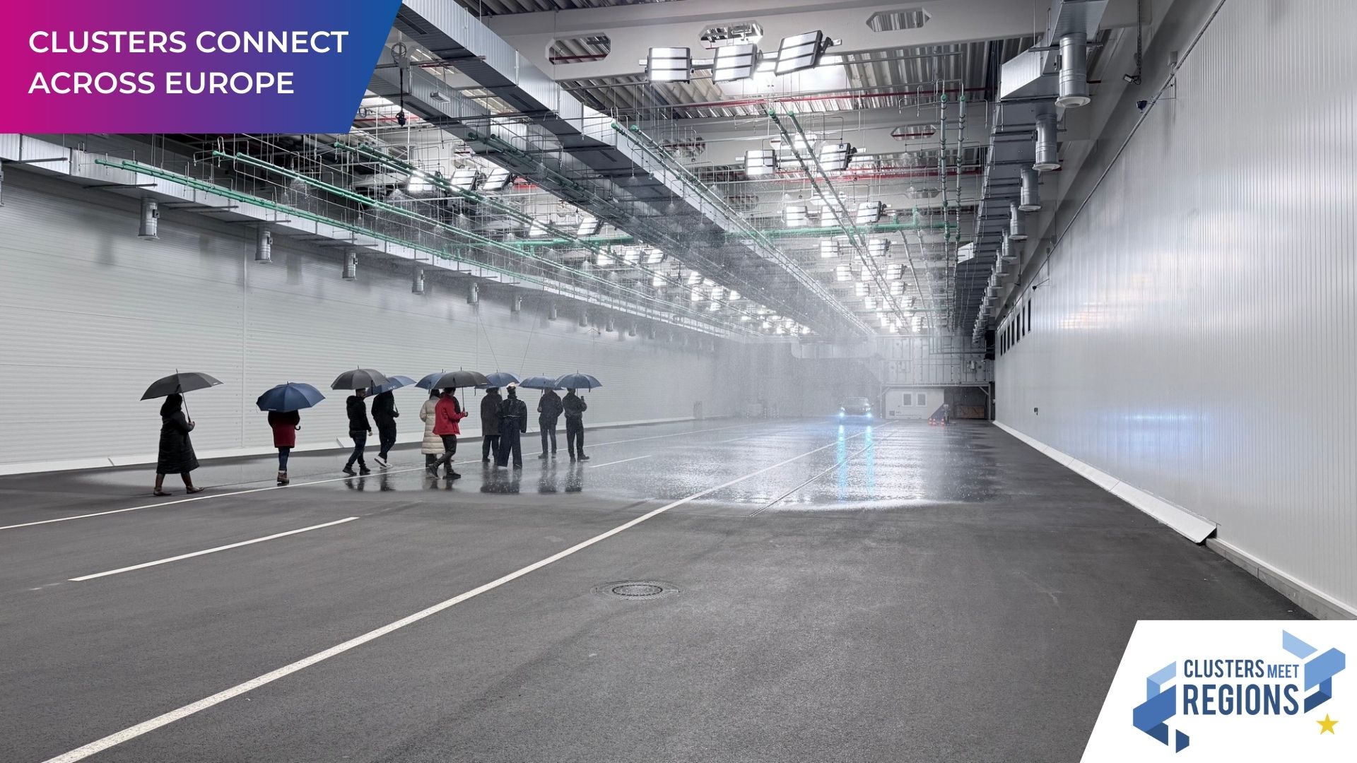 The event started with an organized shuttle bus from Regensburg, bringing participants to the test site in Roding. There, attendees visited the AVL Software and Functions GmbH test center, which features a specially designed weather hall — a 1,600 m² indoor test area (84 m × 19 m) where adverse weather conditions such as rain, fog, and varying lighting scenarios can be simulated. These simulations aim to test the robustness and reliability of ADAS and autonomous driving systems under realistic yet repeatable environmental conditions.