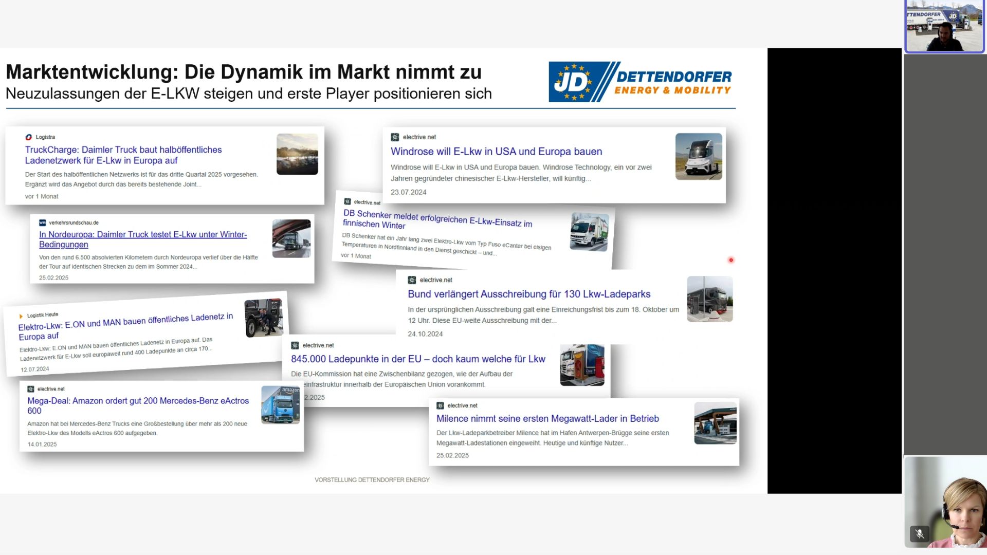 The third part of the “Transforming Transport” webinar series on May 12 focused on the presentation of a project for a fast-charging park for e-trucks based on the Inntal Autohof in Raubling. Dettendorfer Energy, a joint venture between Energie Südbayern and Dettendorfer Spedition, has set itself the goal of building a powerful and sustainable infrastructure for electric vehicles. The focus here is on charging options for electric trucks. After all, more and more e-trucks will be on the road in future to transport goods from A to B.