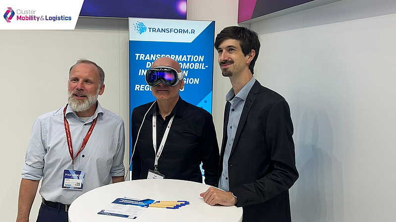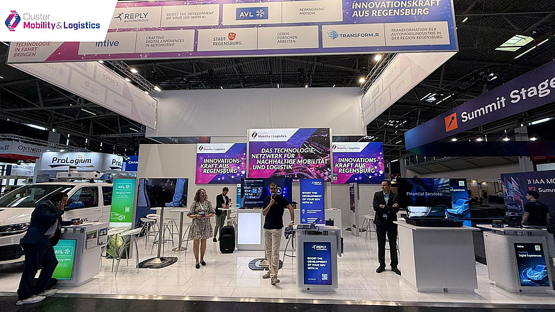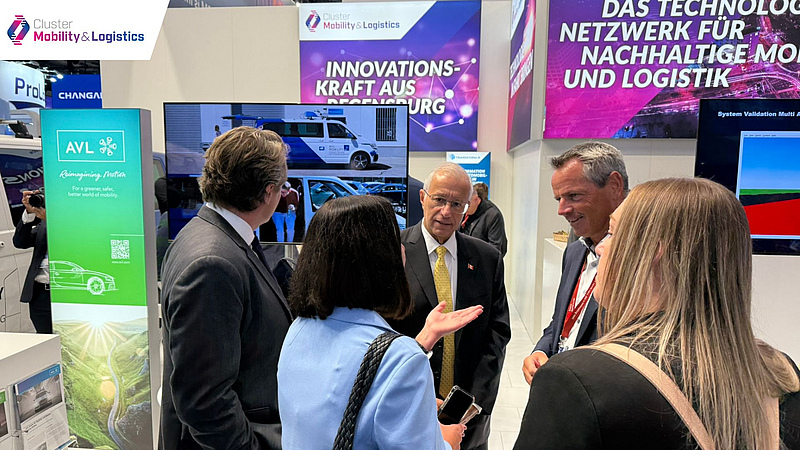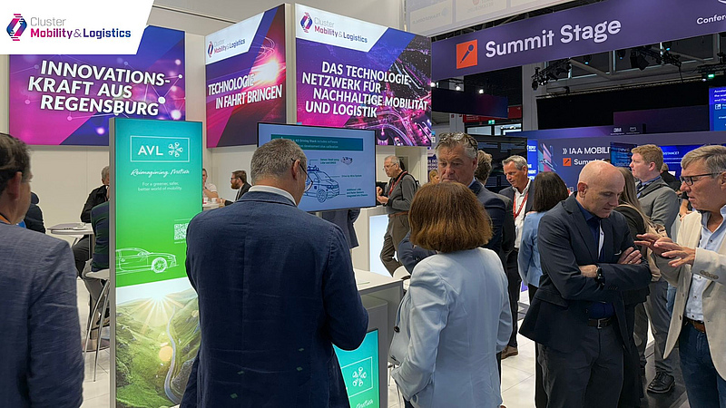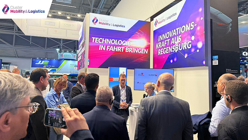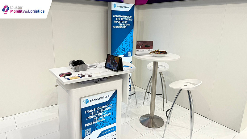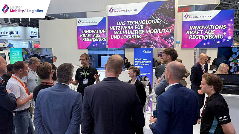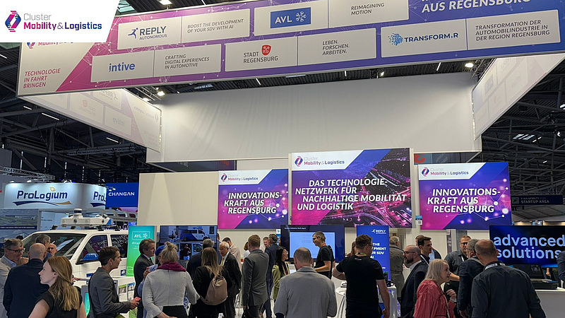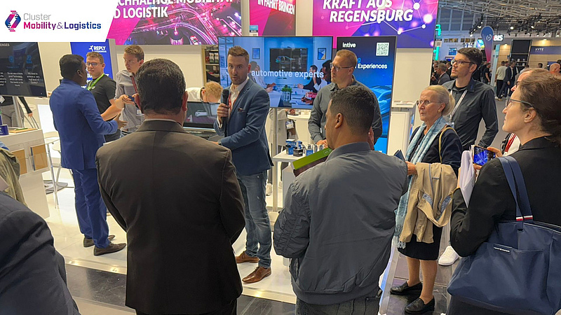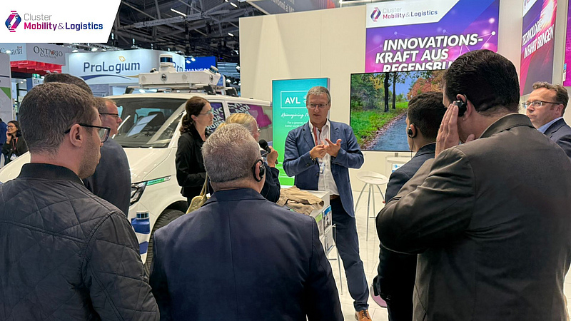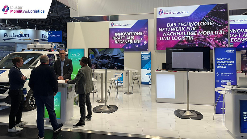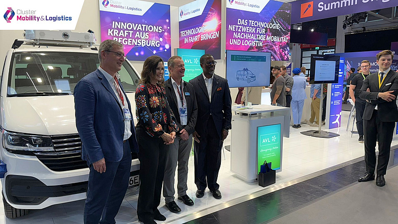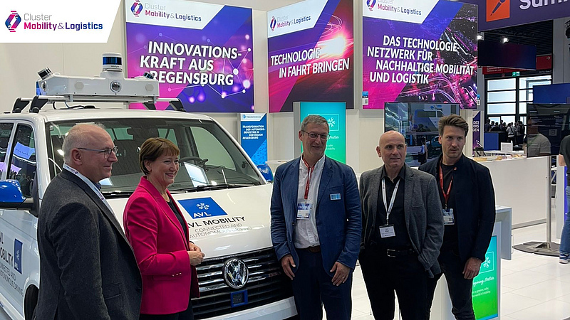 Among other things, the AutBus, a state-of-the-art, autonomous shuttle vehicle from AVL Software and Functions, which was specially developed for use in public transport, was represented at the exhibition stand. With Apple Vision Pro, the Cluster Mobility & Logistics brought a current application project from the Regensburg real-world laboratory for urban mobility, R_Lab Mobility, to life.
