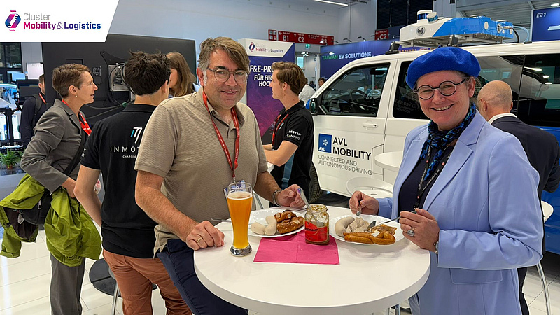 On 10 September 2025, the co-exhibitors and the Cluster Mobility & Logistics invited guests to network and exchange experiences at the Bavarian breakfast at their stand. Numerous guests accepted the invitation, visited the stand and exchanged ideas over Bavarian veal sausages and pretzels.