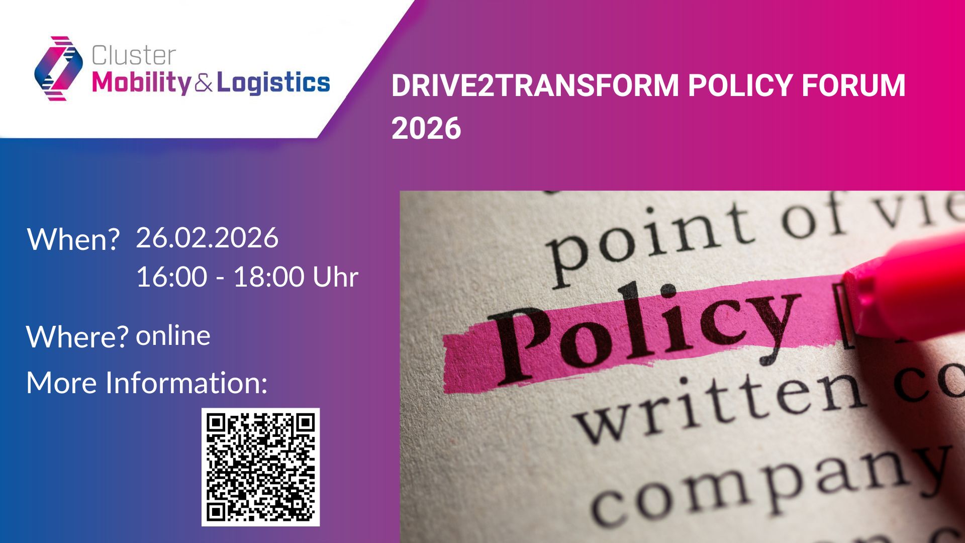 With the Drive2Transform Policy Forum 2026 on 26th of february we are launching a premier series to bring together policymakers from across Central Europe. Our goal is to discuss current developments, strategic needs, and future opportunities in these key transformation fields.