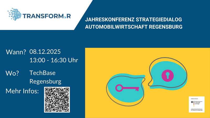 Das Transformationsnetzwerk transform.r des Clusters Mobility & Logistics lädt Sie am 08. Dezember herzlich ein zur Jahreskonferenz Strategiedialog Automobilwirtschaft Regensburg.