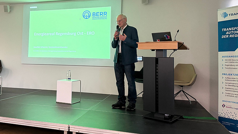 Abschließend stellte Joachim Scherrer (BERR eG) das Projekt „Energieareal Regensburg Ost – ERO“ vor, das grünen Strom aus Bürgerhand für die regionale Industrie zugänglich macht. Sein Aufruf an die Region lautete klar: „Wir haben die besten Voraussetzungen in der Region – lassen Sie sie uns umsetzen.“