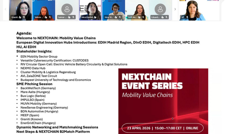 Die Veranstaltung „NEXTCHAIN – Mobility Value Chains“ am 23. April 2026 brachte zentrale Akteure der europäischen Mobilitäts- und Innovationslandschaft in einem kompakten Online-Format zusammen. Ziel war es, die digitale Transformation entlang der Mobilitätswertschöpfungsketten voranzutreiben und neue Kooperationspotenziale sichtbar zu machen.