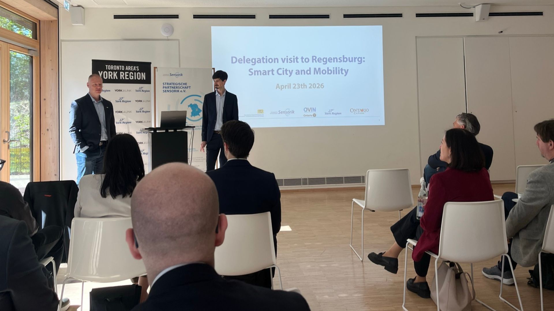 Am 23. April 2026 fand in Regensburg die Veranstaltung „Business Invitation: Transatlantische Synergien in Smart City & Mobility“ statt. Ziel war es, den Austausch zwischen bayerischen Unternehmen und einer Wirtschaftsdelegation aus der kanadischen York Region (Ontario) zu fördern und konkrete Anknüpfungspunkte für internationale Kooperationen zu schaffen.