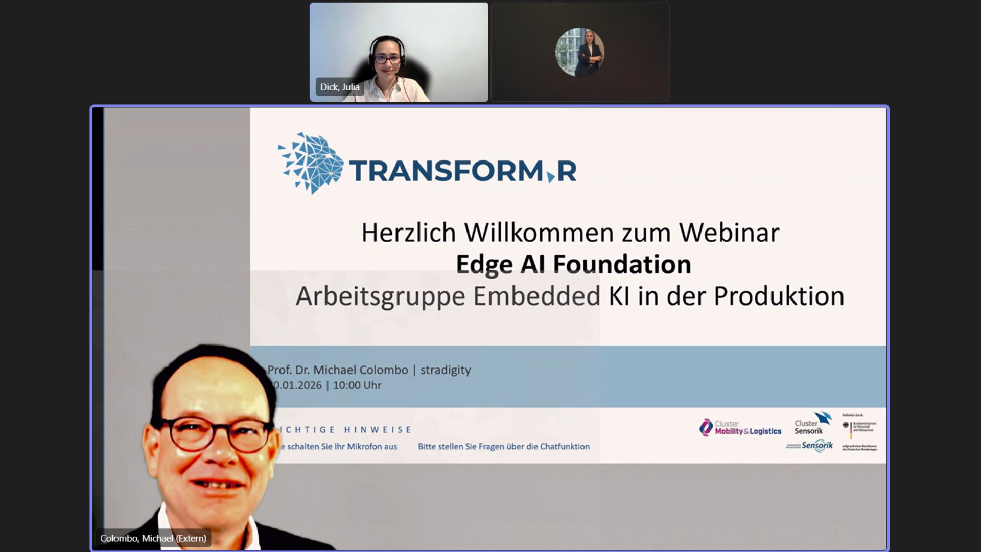 Im Mittelpunkt stand ein Impulsvortrag von Prof. Dr. Michael Colombo (Stradigity), der einen Einblick in die Edge AI Foundation gab. Der Vortrag stellte zentrale Aspekte und grundlegende Überlegungen rund um das Thema Edge AI vor und bot damit Anknüpfungspunkte für die weitere Diskussion in der Arbeitsgruppe.