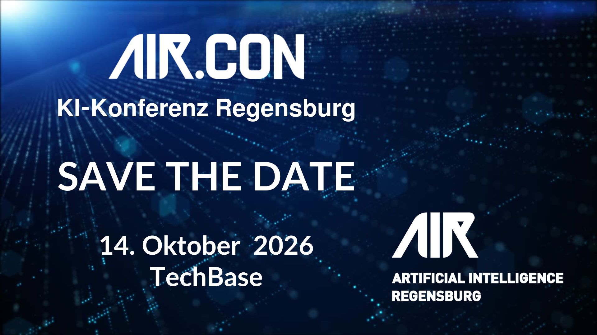Das Cluster AIR Artificial Intelligence Regensburg lädt Sie am 14. Oktober 2026 herzlich ein zur 2. AIR.CON in die TechBase in Regensburg.