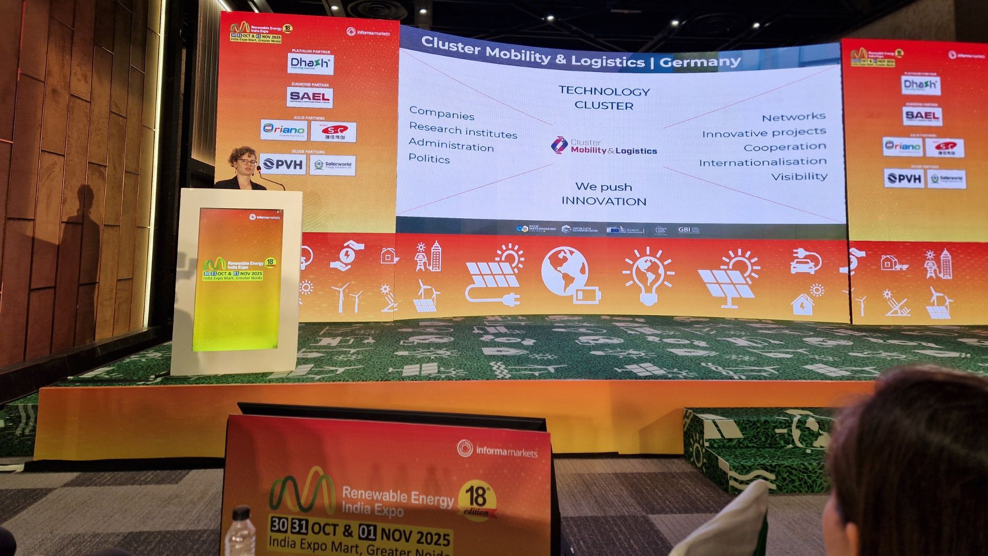 Das Event fügte sich nahtlos in die strategische Linie der EU ein, grüne und digitale Transformation gemeinsam mit Indien voranzutreiben. Die 2025 neu veröffentlichte EU-India Strategic Agenda sowie das für Ende 2025 angekündigte Freihandelsabkommen zwischen der EU und Indien zeigen die herausragende Wichtigkeit dieser Beziehungen. Umso mehr betont wurde dies durch die bemerkenswerte EU-Präsenz auf der Renewable Energy India Expo am 30.10.2025 in Person von Dr. Ewa Sawara, Deputy Head of the Delegation of the European Union to India, und des deutschen Botschafters in Indien, Dr. Philipp Ackermann.