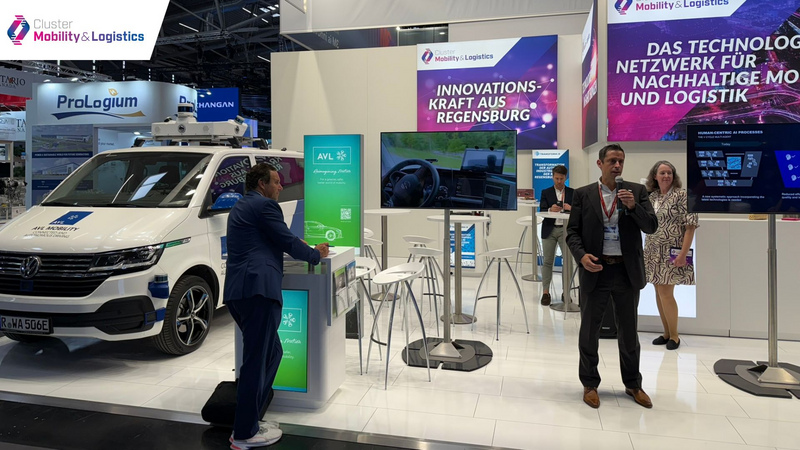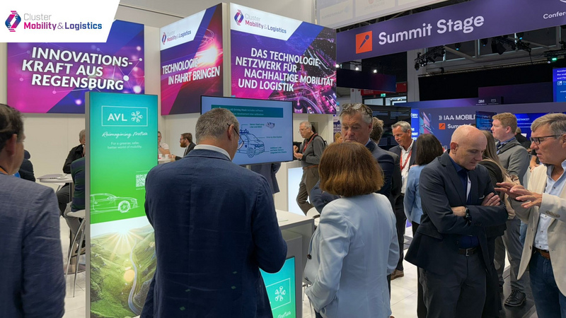 Das Cluster Mobility & Logistics war von 9. bis 12. September 2025 auf der IAA MOBILITY mit einem Gemeinschaftsstand im Summit (Halle B2, Stand E11) auf dem Messegelände der Messe München vertreten. Am 8. September 2025 fand der Pressetag mit nationalen und internationalen Medienvertretern statt.