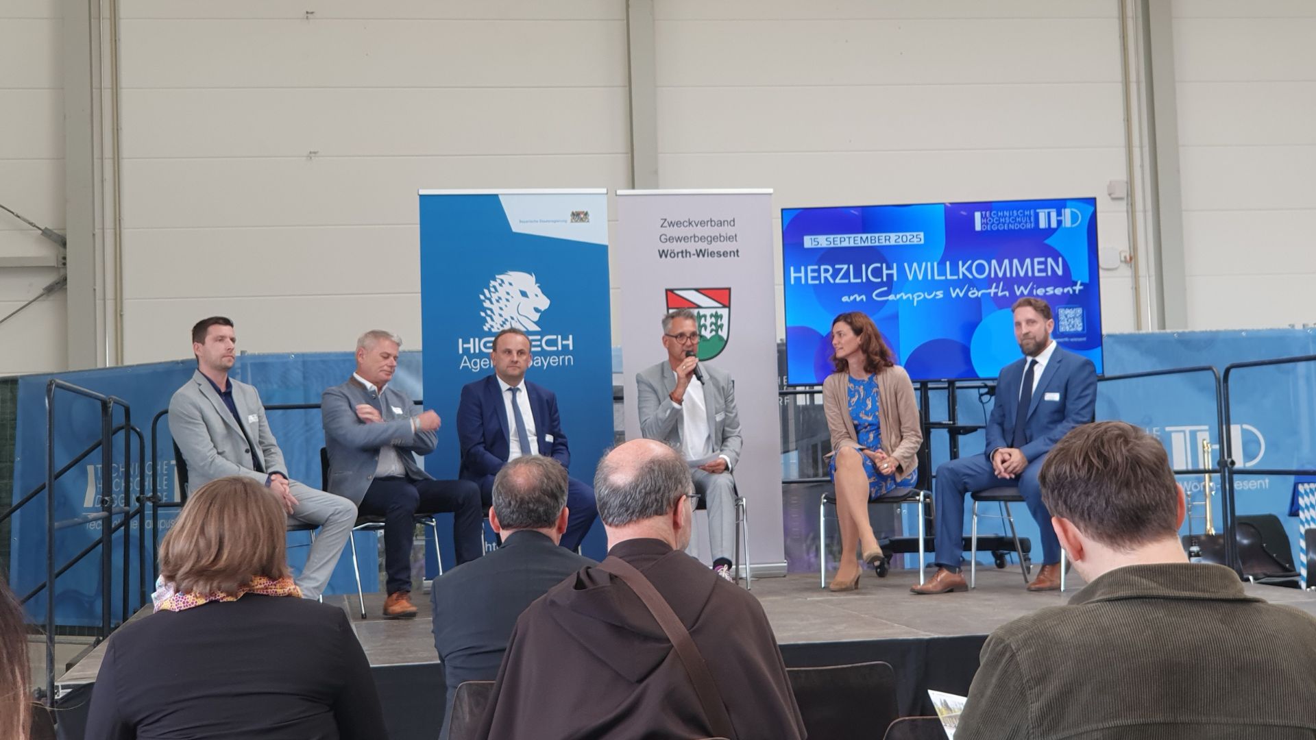 Die Gäste erwartete am 15. September ein abwechslungsreiches Programm: Zu den Höhepunkten zählten das symbolische Platzenlassen eines Wasserstoffballons durch Wissenschaftsminister Markus Blume, die Podiumsdiskussion „Energiewende für Europa und die Welt – made in Wörth-Wiesent“, ein Laborrundgang sowie ein Sketch zur Entstehung des TC. Im Anschluss öffnete der Technologie Campus dann seine Türen für alle Interessierten.