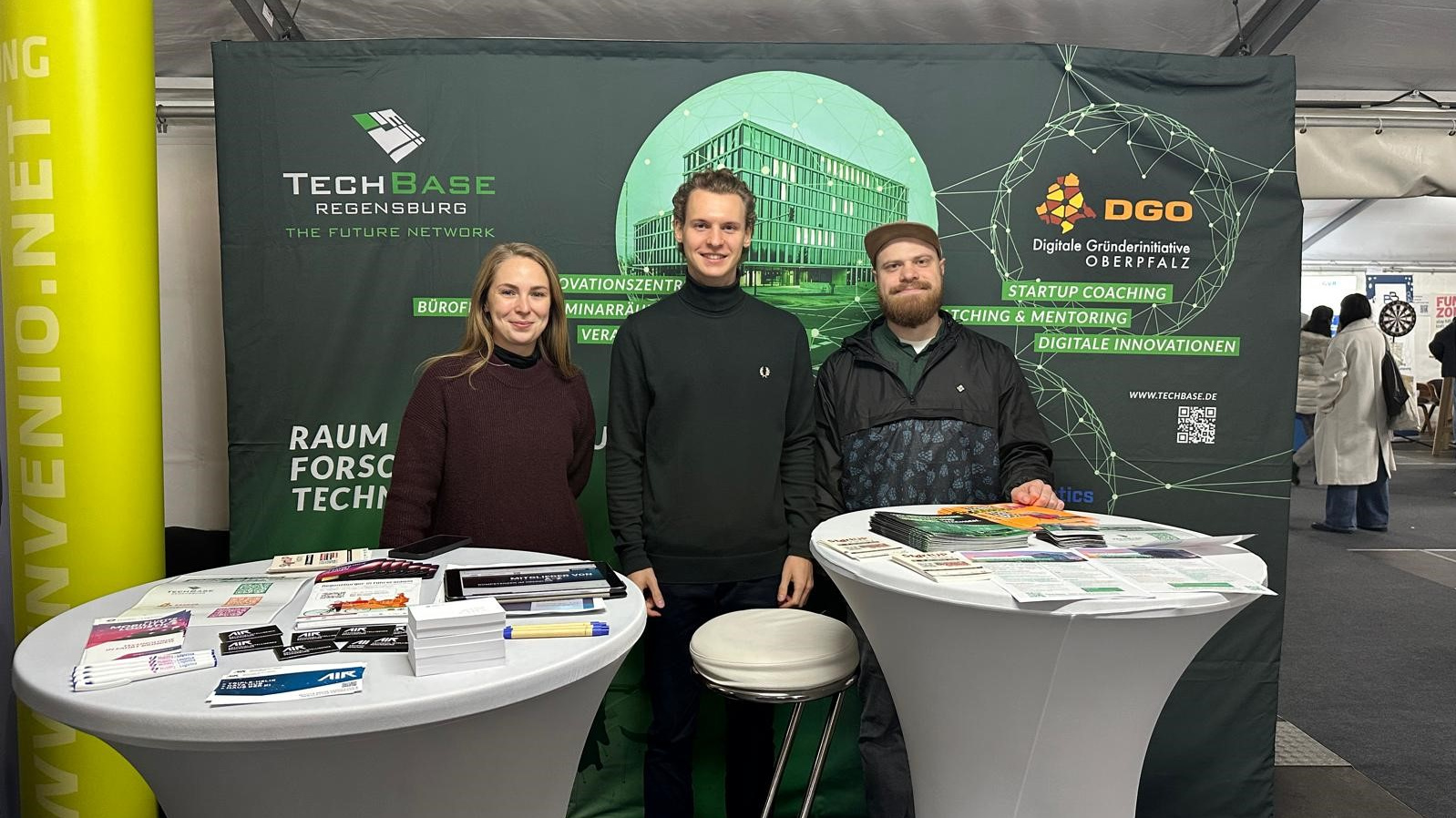 Das Cluster Mobility & Logistics war gemeinsam mit der TechBase im Ausstellerzelt (Platz Z 16) vertreten. Interessierte Besucher:innen konnten sich über die vielfältigen Angebote der TechBase informieren – von der Unterstützung für Start-ups über die DGO: Digitale Gründerinitiative Oberpfalz bis hin zu innovativen Projekten im Bereich Künstliche Intelligenz (AIR Artificial Intelligence Regensburg) und Mobilitätslösungen der Zukunft.