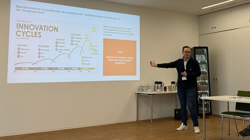 Der Impulsvortrag von Dr. Philipp Ramin bot einen strukturierten Überblick über wirksame Innovationsansätze: von der systematischen Trendbeobachtung über methodische Innovationsprozesse bis hin zu organisationalen Voraussetzungen, die Veränderung ermöglichen. Ein Schwerpunkt lag darauf, wie Unternehmen Innovationsfähigkeit als kontinuierliche Kompetenz entwickeln und im Alltag verankern können.