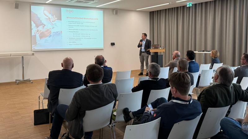 - Georg Berberich von REICHHART Logistik beleuchtete die Rolle von Biomethan als alternativer Kraftstoff im Kontext zunehmender Anforderungen an die CO₂-Reduktion. REICHHART setzt Biomethan der 2. Generation (aus Reststoffen) in seiner LKW-Flotte ein und zeigte auf, wie diese Technologie im Vergleich zu E- und H₂-LKWs wirtschaftlich und betrieblich konkurrenzfähig ist. Praxisbeispiele – etwa Transporte für LKQ, BMW oder Airbus – verdeutlichten das Potenzial für CO₂-neutrale Transporte schon heute.