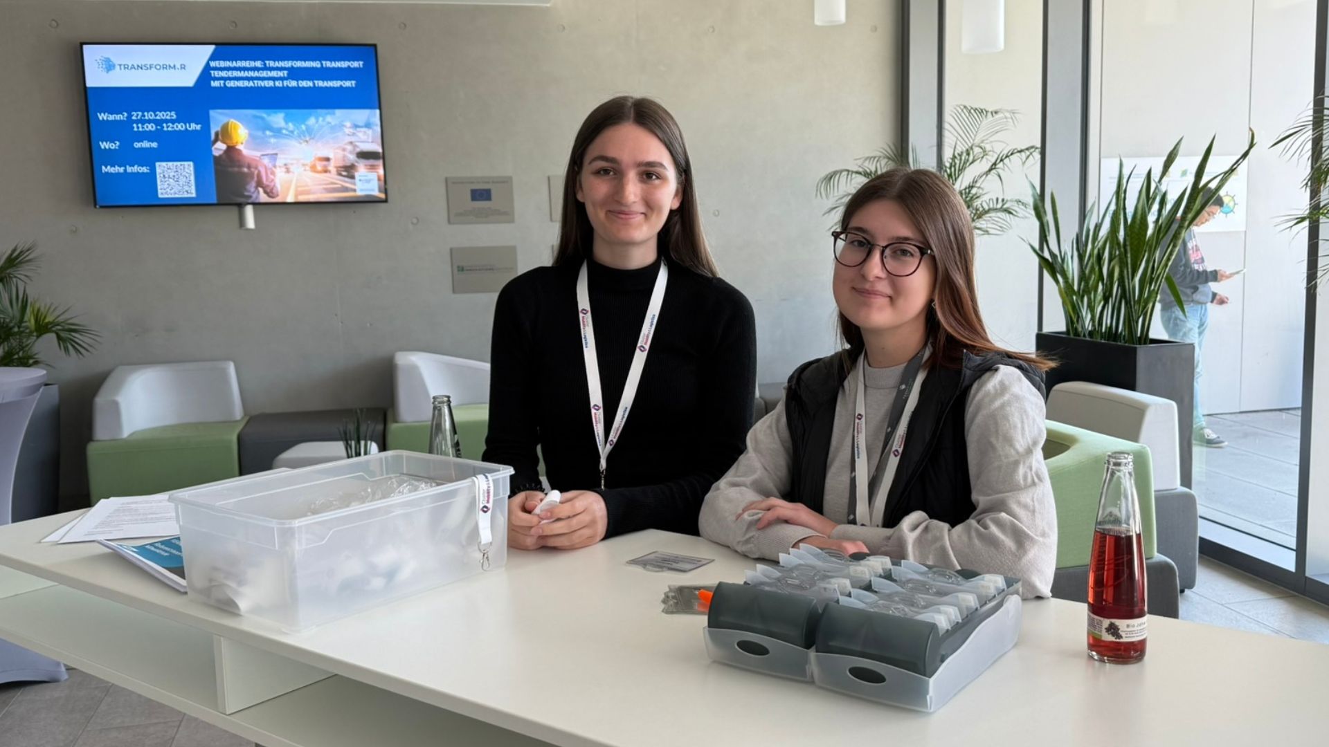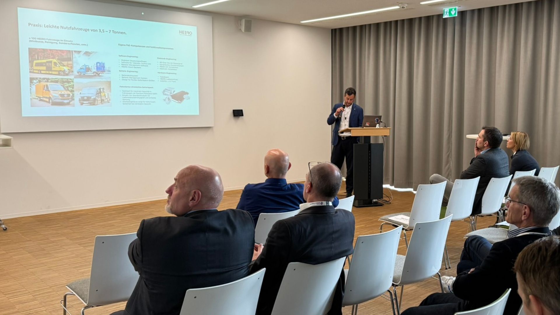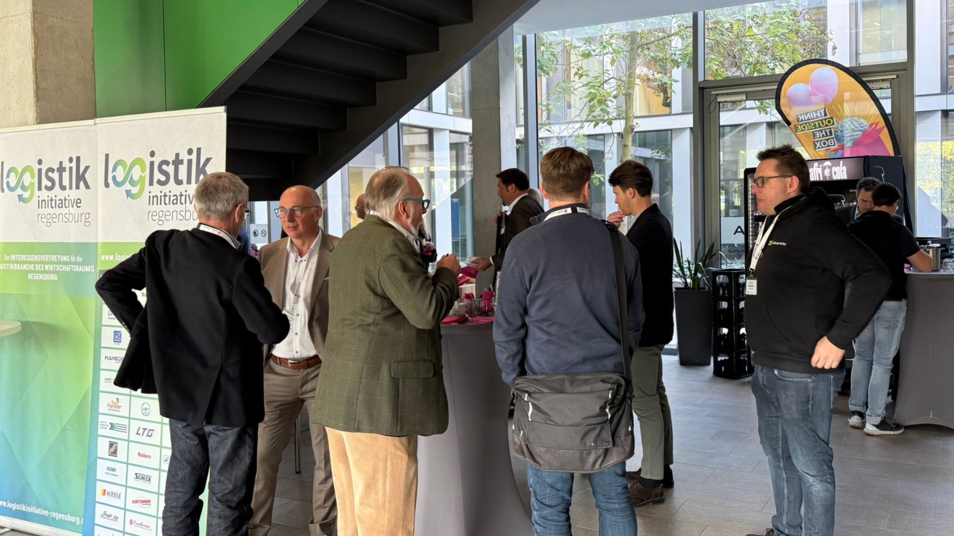 Parallel zur Vortragsreihe präsentierten sich in einer begleitenden Fachausstellung Unternehmen wie E-Works Mobility GmbH und REICHHART Logistik sowie das vom Bundesministerium für Wirtschaft und Klimaschutz geförderte Transformationsnetzwerk transform.r. Die Ausstellung bot Teilnehmenden die Gelegenheit zu Austausch und Vernetzung mit Lösungsanbietern im Bereich alternativer Antriebe, Logistik-IT und Fahrzeugtechnik.