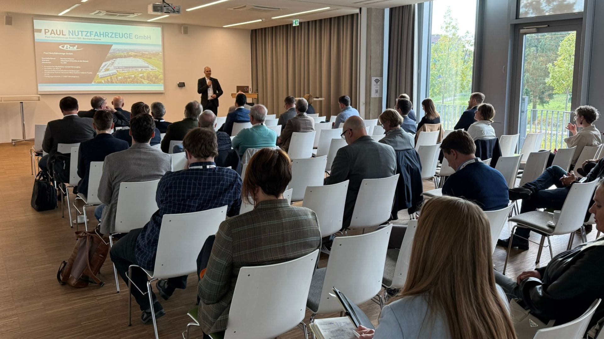- Bernhard Wasner von der Paul Nutzfahrzeuge GmbH stellte in seinem Vortrag „H2- & BEV-LKW – Innovative Lösungen für den Transport der Zukunft“ verschiedene Antriebstechnologien gegenüber. Dabei betonte er, dass Wasserstoff- und Batterieantriebe je nach Einsatzzweck komplementär zum Einsatz kommen sollten. Anhand des Projekts PH2P® zeigte er praxiserprobte Fahrzeuge für den KEP-Dienst, Kühltransporte oder den Werksverkehr, die bereits über eine Million Kilometer gefahren sind. Technisch basiert das System u. a. auf Brennstoffzellen von Toyota und Antrieben von Voith.