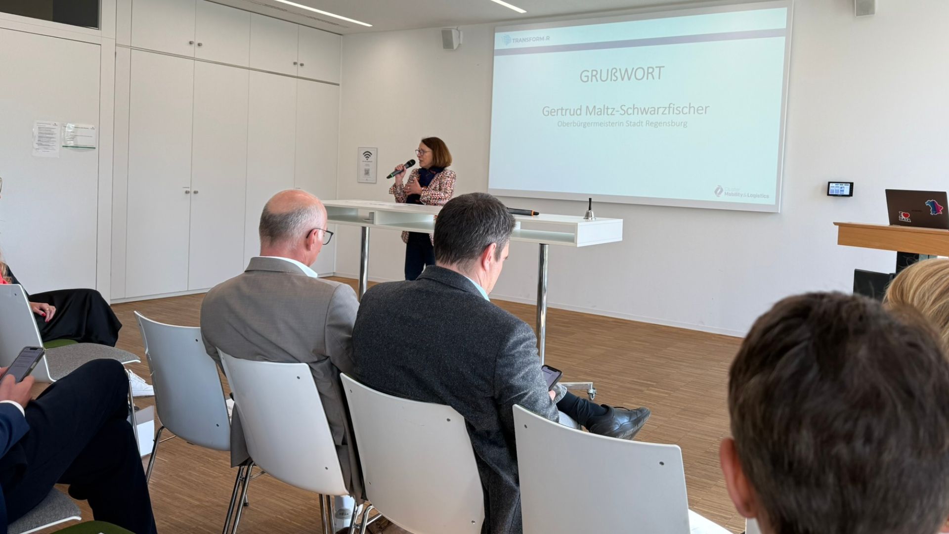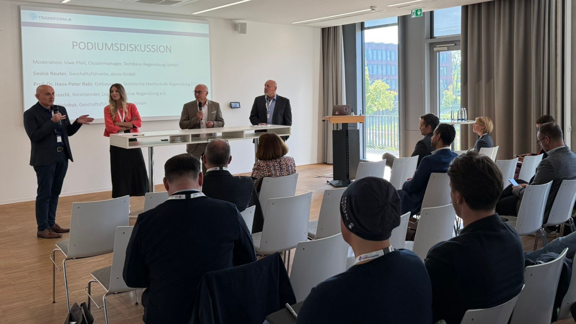 Das Programm eröffnete Alexander Rupprecht, Geschäftsführer der TechBase, gefolgt von Grußworten von Staatsminister Christian Bernreiter (per Videobotschaft) und der Regensburger Oberbürgermeisterin Gertrud Maltz-Schwarzfischer. Eine Podiumsdiskussion mit Vertreterinnen und Vertretern aus Wirtschaft und Wissenschaft – darunter Saskia Reuter (aluco GmbH), Prof. Dr. Hans-Peter Rabl (OTH Regensburg), Robert Praschl (Logistikinitiative Regensburg e.V.) und Andreas Weinhut (Weinhut GmbH) – vertiefte die Kongressthemen in praxisnaher Perspektive.